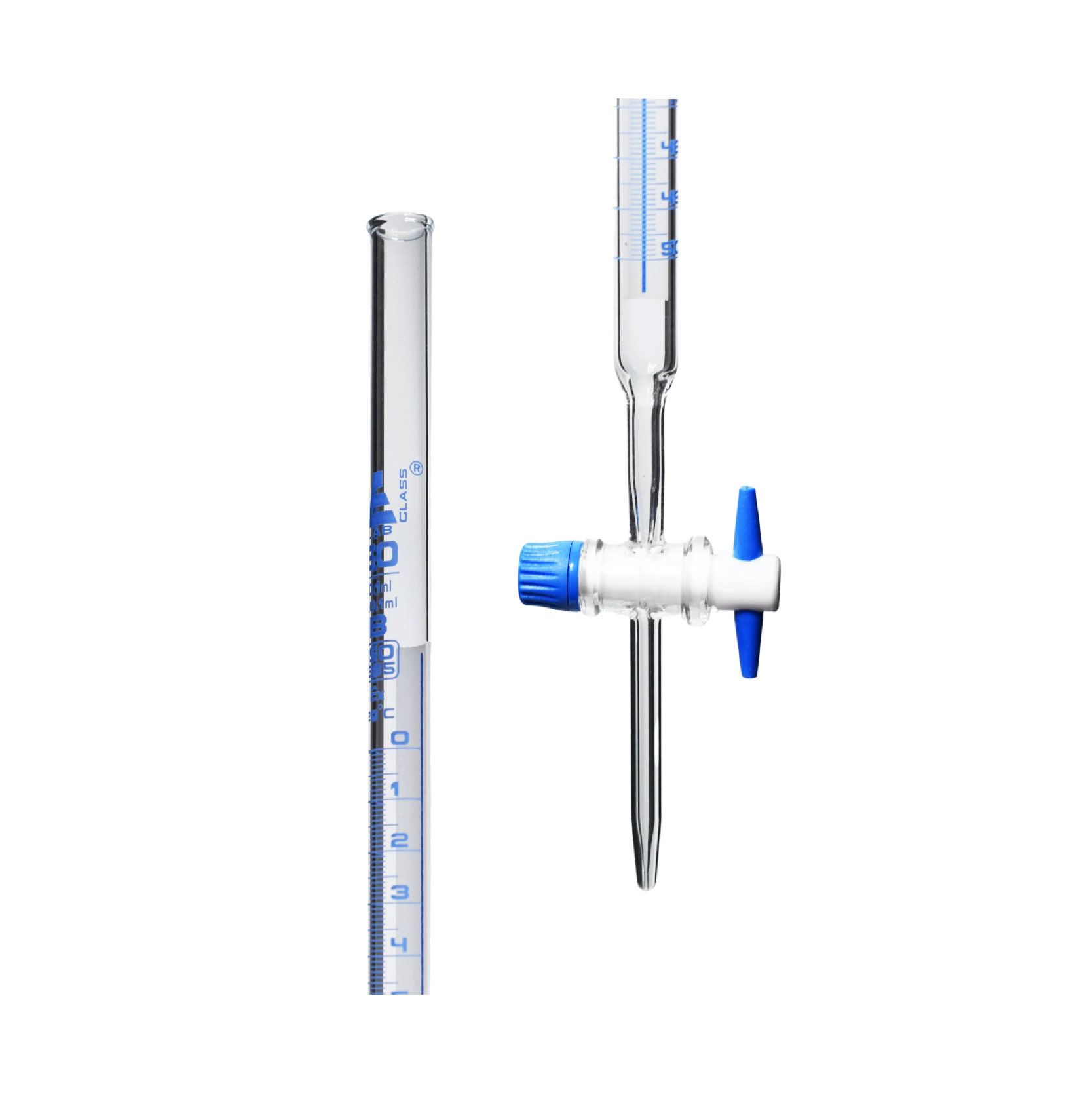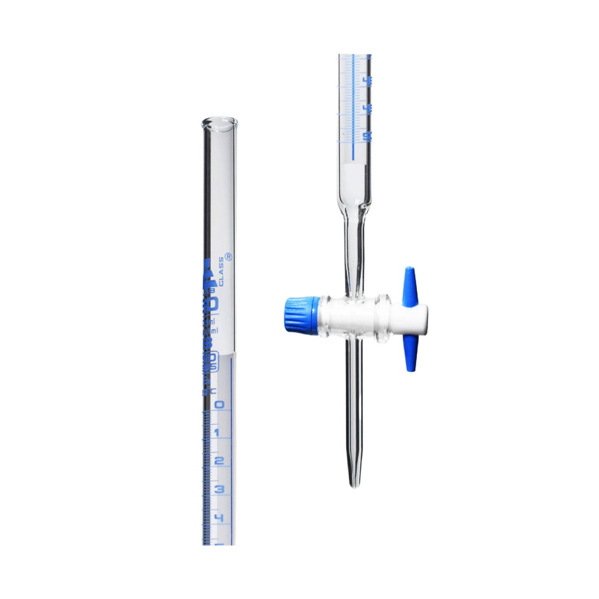 Burette 50ml, Glass C/W Ptfe Stopcock, Blue Graduation, Class B ‘MBL’ Germany